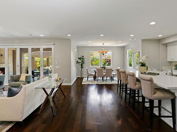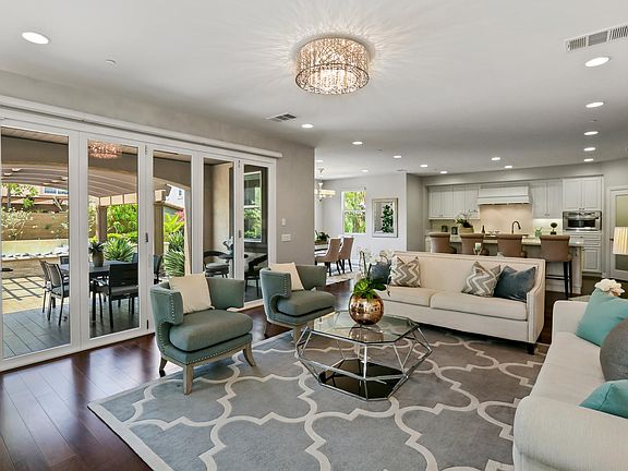 Chic, elegant, "Club Monaco" inspired Rosemist home in the exclusive Great Park neighborhood. Inviting open floor plan with a grand entry with maple hardwood flooring. Entertainers kitchen flows to the great room. Upgraded accordion-style doors open up a beautifully landscaped backyard with a California room, ceramic tile and travertine flooring imported from Turkey & Italy, fruit trees, 2 fireplaces with a sitting area, and a classic architecturally designed arched trellis that is undeniably unique. An amazingly useful Lennar "Next Gen" plan with a private full live-in suite that includes a separate side entrance and a bedroom with full bath on main floor. A 3-car garage with built-ins for extra storage. Built in 2014, it is better than new bc it includes over $165,000 in upgrades including California Closet designs throughout, epoxy garage flooring, Quartz counter-tops, Nexia monitoring system, Hunter Douglas window treatments, GE Monogram appliances, unique lighting features, open fireplace, and many other upgrades that are too many to mention. Excellent Irvine schools. Convenient shopping. Great Park amenities. This home is flawless. It is beautiful yet functional. It is the chic, understated elegant residence that you will love and call home.