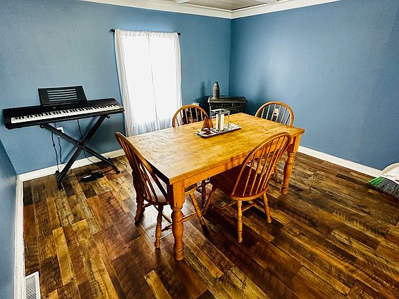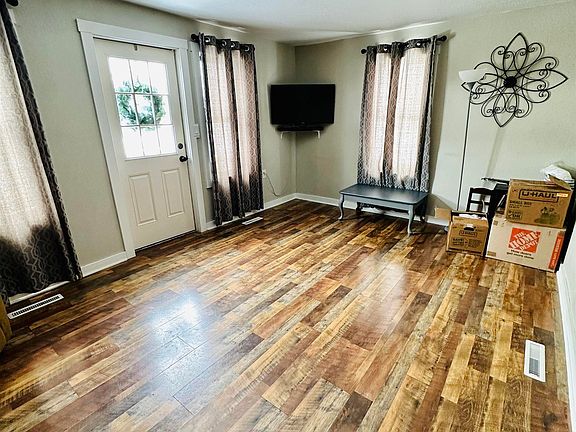 Welcome to this charming home, cute as a button and ready to embrace its new owners! Greet your guests with warmth on the nice-sized front porch, or opt for the convenient side entrance, complete with coat hooks and easy access to the kitchen—perfect for unloading groceries. Step inside to discover a completely updated interior, boasting a beautiful farmhouse kitchen where culinary dreams come to life. The open dining room and spacious living area create an inviting atmosphere for entertaining or relaxation. A full bathroom adds convenience on the main level. Ascend upstairs to find two generously sized bedrooms adorned with hardwood floors, offering comfort and style. Downstairs, the full basement awaits your personal touch, currently serving as a laundry area, housing utilities, and providing ample storage space. Outside, the large backyard beckons for outdoor enjoyment, complemented by a handy shed for storing outdoor tools and toys. This amazing home is ideal for those embarking on their homeownership journey. Don't miss the opportunity to make it yours!