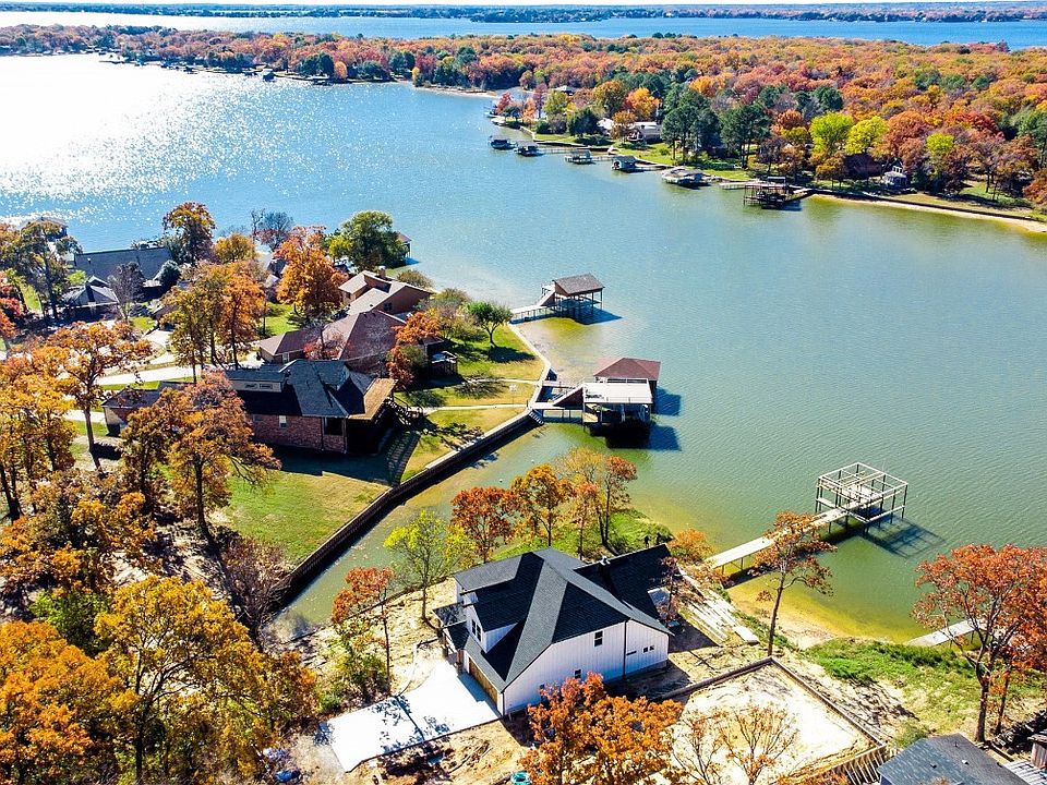 Stunning Brand-New Construction on deep water. 16’ at full lake level!! Bonus for you is that it has VRBO potential!! Home includes 4 bedrooms, 3.5 bath with 2 a car garage and a huge back porch with cable railing. Interior is almost complete and final exterior landscaping and boat dock are in the works. Boat dock will have a boat slip, double jet ski lift and sitting area to enjoy the beautiful views. Builder has amazing interior designs you will love to call home.