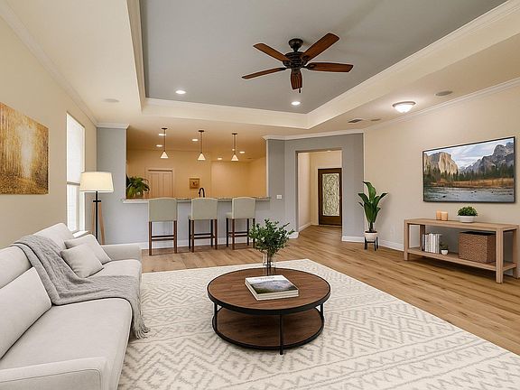 Private extended patioOversized custom stone fireplaceBeautiful green belt viewsSpacious islandAbundant counter spaceNew gas range