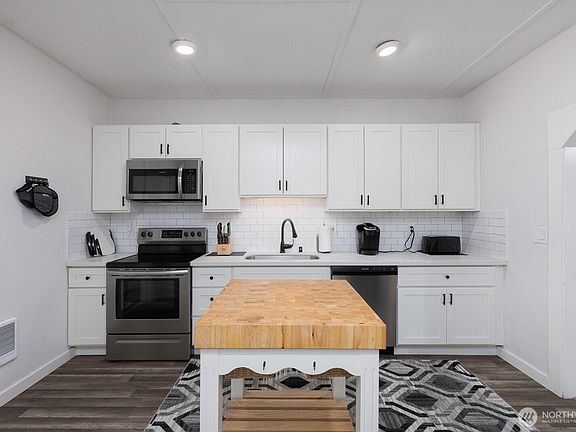Welcome to this charming Roy rambler, perfectly positioned on a sunny corner lot across from the city park—complete with playground and basketball court! Just a short stroll to Main Street and 10 minutes to JBLM’s East Gate, the location can’t be beat. Inside, enjoy a well-maintained home with a newer roof, heat pump, water heater, electrical, crawlspace insulation and SS appliances! The updated kitchen offers space for cooking and gathering, while the oversized bedrooms and stylish bath with double vanity add comfort. A flex space for an office or dining and a large utility room provide ample storage. Out back, a spacious yard invites gardening, play, and entertaining. Move-in ready and full of charm! Ask about 2.75% assumable VA loan!