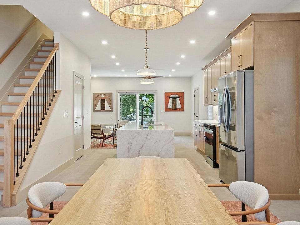 An extra-wide fireplace warms the winters and sets the mood with a cozy ambiance. Step outside and let the towering trees and chic backyard oasis greet you with southern exposure, cool breezes, and space to unwind.