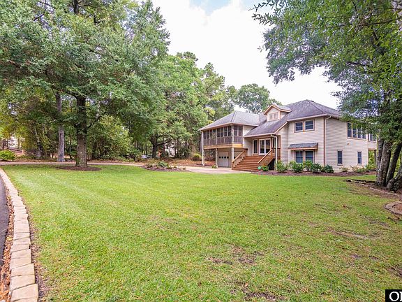 Enjoy peace and quiet in this well-maintained custom home in the Cliffs of Colington sitting on 1.16 acres of pristine maritime forest with manicured landscaping and irrigation system. Upon entering the foyer with 18' ceilings, a light and airy great room awaits you with beautiful solid red oak hardwood flooring and gas fireplace connecting to the kitchen with a breakfast bar. Off the great a 16' x 24' sunroom with tongue and groove wood ceiling and plenty of windows to let in nature. Off the sunroom you will find a large sundeck. Down the hall features the primary suite with tray ceilings, a walk-in closet and tiled shower and a second bedroom with a private screened porch with accent wood ceiling as well as another full bathroom. The ground level features another bedroom with a walk-in closet and full bathroom leading to a finished space with custom 9' high wooden shelving perfect for a game room, home office or studio. Also included on the ground level is a spacious two car garage with plenty of storage with double doors leading to a workshop or area for additional storage also featuring 9' high wooden shelving. Off the back of the home is a large concrete storage pad. Take a quick stroll to the community sound access to enjoy on the water sunsets or hop in the car to get to the beach in under 10 minutes. This is an ideal retirement or primary residence location.
