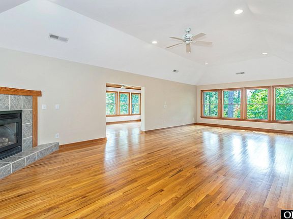 Enjoy peace and quiet in this custom home in the Cliffs of Colington sitting on 1.16 acres of maritime forest. Upon entering the foyer with 18' ceilings, you enter a light and airy great room with solid red oak hardwood flooring and gas fireplace connecting to the kitchen with a breakfast bar and a 16' x 24' sunroom with tounge and groove wood ceiling and plenty of windows to let in nature. Off the sunroom you will find a large sundeck. Down the hall features the primary suite with tray ceilings and a walk-in closet and a second bedroom with a private screened in porch as well as another full bathroom. The ground level features another bedroom with a walk-in closet and full bathroom leading to a finished space with custom 9' high wooden shelving perfect for a game room, home office or studio. Also included on the ground level is a 2 car garage with plenty of storage with double doors leading to a workshop or area for additonal storage also featuring 9' high wooden shelving. Take a quick stroll to the community sound access to enjoy sunsets or hop in the car to get to the beach in under 10 minutes.