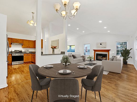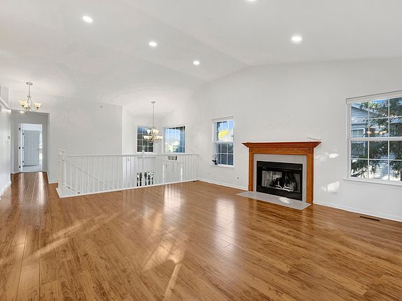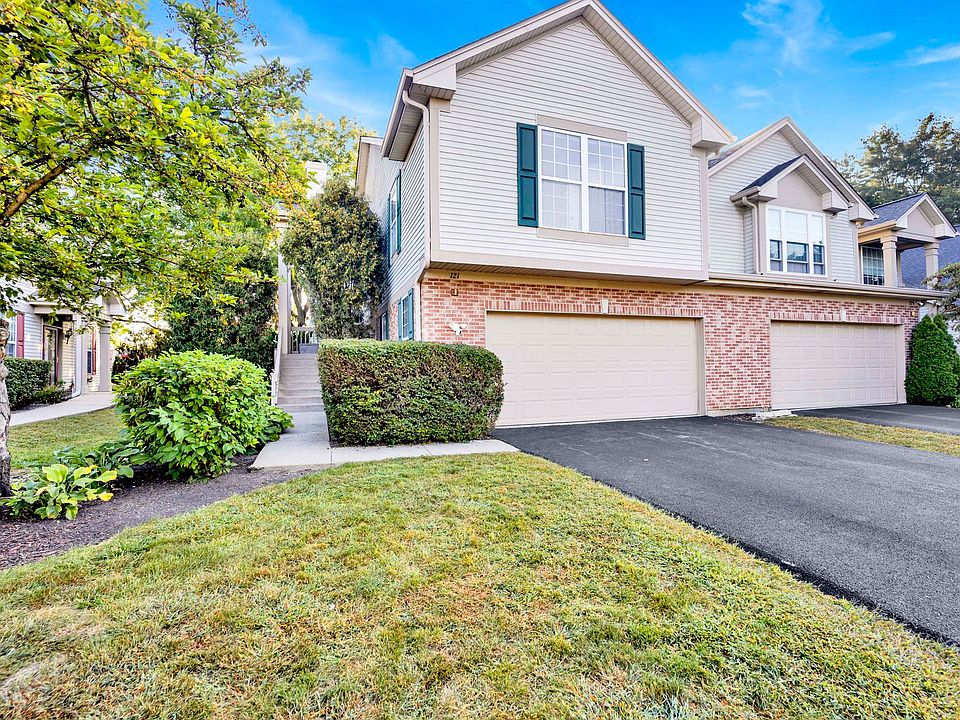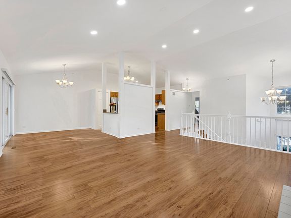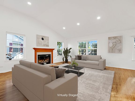 Welcome to this spacious and sun-filled 3-bedroom, 3-bathroom townhome in the heart of Wheeling! This two-story home impresses with dramatic vaulted ceilings, oversized windows, and an open-concept living and dining space, anchored by a cozy gas fireplace-perfect for entertaining or relaxing. Upstairs, you'll find a beautifully updated kitchen with ample cabinet space, granite countertops, and a dedicated dining area that opens to your private balcony. The primary suite features a walk-in closet, double vanity, soaking tub, and separate shower. A second generously sized bedroom and full bath complete the upper level. On the ground floor, discover a versatile third bedroom and full bath, plus a large recreation room ideal for a media room, playroom, home office, or gym. Step outside to your private patio, adding to the home's two outdoor spaces. Attached 2-car garage (ready for an EV charger), abundant storage, and a thoughtful floor plan make this home a rare find. Conveniently located near parks, restaurants, and Metra.