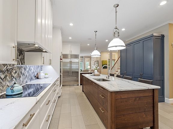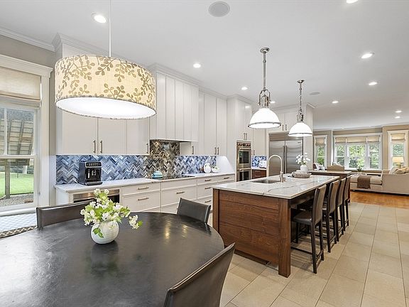 Architectural brilliance meets modern luxury in this masterfully designed residence. Sunlight cascades over the centerpiece of the home–a dining room dramatically open to the second floor and framed by a wall of glass windows & atrium doors leading to outdoor living. Two distinct fireplaces anchor the main level, blending period details in the formal living room & casual farmhouse-style in the family room open to a chef’s kitchen with stone countertops and professional grade Sub-Zero & Wolf appliances. Second floor highlights include a primary bedroom ensuite discreetly separate from the other four bedrooms including a second bedroom ensuite and three balconies emphasizing the indoor/outdoor living experience. The lower level offers abundant space for casual entertainment or practical multi-generational living options with a sleek modern design. Polished both inside and out with interior and landscape design, this enticing home elevates your expectation for outstanding homeownership.