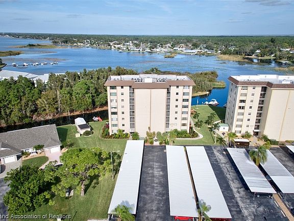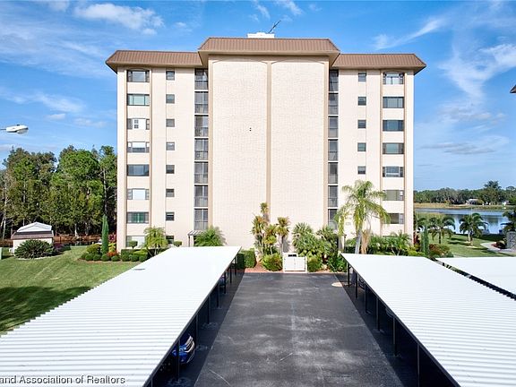Experience the epitome of low maintenance lakeside living at Lakeshore Towers, a premier all-ages condo enclave gracing the serene shores of Lake Grassy. This gorgeous unit is being offered partially furnished! Boasting a central locale just 90 minutes from each coastline, this meticulously upgraded sixth-floor end unit in Sun N Lakes of Lake Placid offers breathtaking views from its screened lanai. Thoughtfully remodeled interiors showcase luxury vinyl plank flooring, chic shaker-style cabinets, and gleaming granite counters, complemented by brand new stainless slide-in range, counter-depth dual drawer fridge and low profile microwave. Efficiency meets elegance with a new tankless water heater, 2018 windows, energy-saving LED fixtures and ceiling fans, and a 2021 hurricane-rated triple door slider to enhance the view. Quarterly HOA includes water, trash, sewer, pest control, lawn care, assigned carport parking, small storage area, community gas grill and waterfront pavilion. Laundry facilities are steps away and included at no extra cost! The HOA insures and maintains the exterior of the building. Dock your boat in your backyard for just $100 a year! Exclusive access to Sun N Lakes amenities - including boat ramp, tennis courts, shuffleboard, beach, ball field, and community center - adds unparalleled value at an affordable $25/year. Don't miss the chance to embrace the lifestyle of comfort, convenience and sophistication. Call your favorite Realtor today!