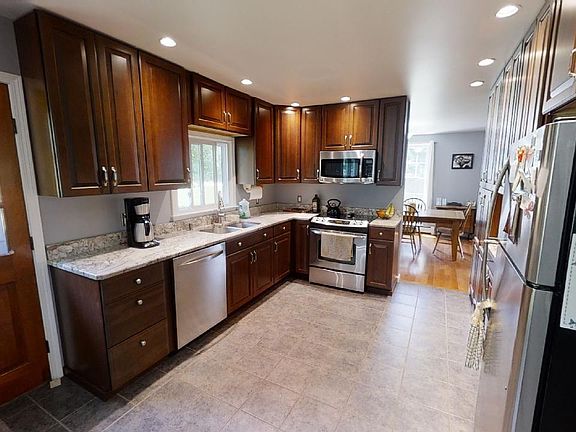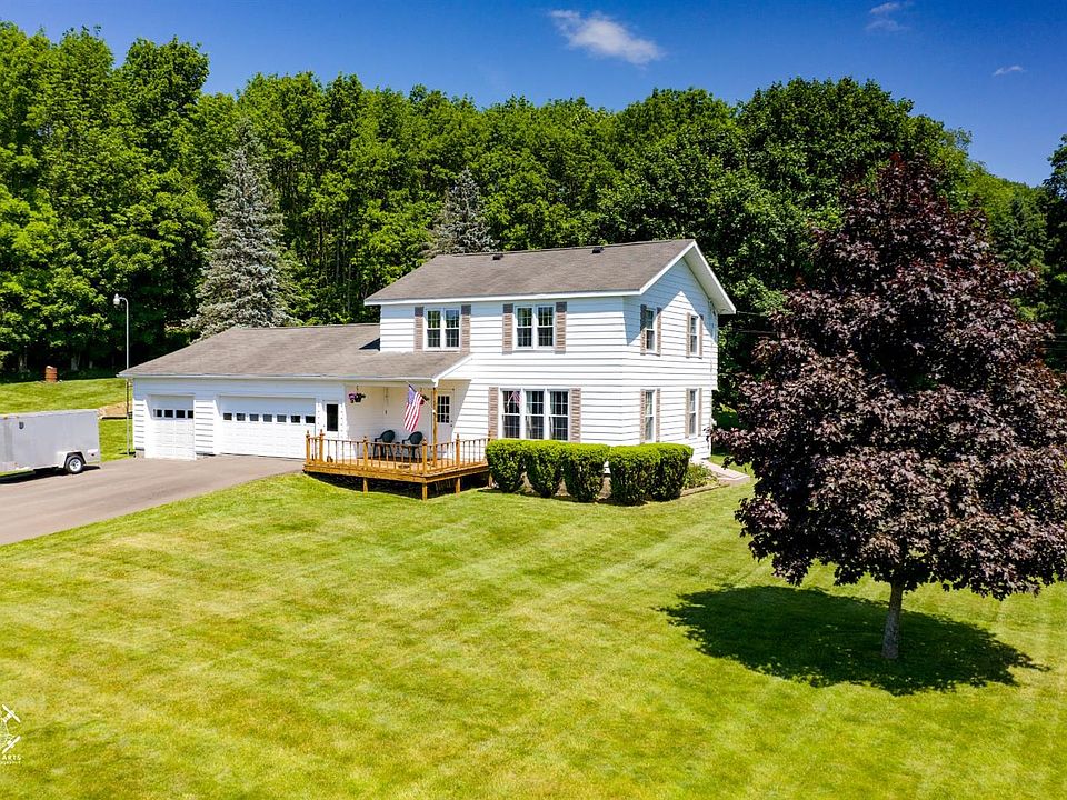 Completely remodeled four bedroom, two and one half bath Colonial just outside the Norwich City limits. First floor highlighted by open concept kitchen and family room. Kitchen features cherry cabinetry, granite countertops, tile flooring and stainless steel appliances - all this with a large granite top eat-in island, open to cozy family room with built-in shelving and sliders to backyard. First floor also offer formal dining room and huge bright living room, all with new hardwood flooring. First floor rounded out by half bath and family room access to attached garage space. Second floor features four bedrooms and completely remodeled guest bath with tile shower surround and beautiful granite vanity. Master suite with another remodeled full bath includes walk-in shower. Entire second floor features all new hardwood flooring. Full dry basement with bilco access, great for storage or finish to your liking. Three garage bays, one currently set up as a sheetrocked workshop. Beautifully maintained yard space and mature landscaping. Take advantage of all of this seller's hard work & move right in!