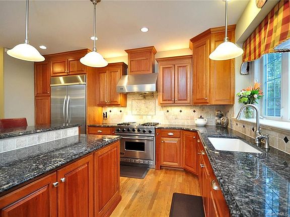 It does not get better than this impressively upgraded 4 Bedroom Colonial nestled in a lovely neighborhood setting by the Briarcliff Swimming & Recreational Club Superbly designed with fine architectural details throughout, this is the perfect venue for entertaining. The gourmet eat-in kitchen is the heart of the home, featuring high-end stainless steel appliances, granite countertops, a grand island that seats up to 6 and a convenient pantry. On one side, glass doors lead to a deck and adjoining patio where you can enjoy the expansive, beautifully manicured fenced-in grounds with playscape and outdoor shower. The other side opens to a vaulted family room with fireplace and lots of natural light filtering thru a gorgeous, oversized window. Multigenerational households will appreciate the 1st floor bedroom, currently used as an office, with nearby full bath. Formal dining room with tray ceiling, formal living room, and 1st floor laundry. Upper level master bedroom is sunny and comfortably sized with tray ceiling, walk-in closet, and newly updated ensuite bath with quartz countertop, soaking tub, and separate shower. Two additional bedrooms and a full bath are also on the upper level. Beautifully finished lower level with full bar, custom built-ins, and recessed lighting. Separate exercise room, workshop, and plenty of storage in the unfinished portion/mechanical area. Whole house generator and irrigation. This is an amazing home, a rare and wonderful opportunity