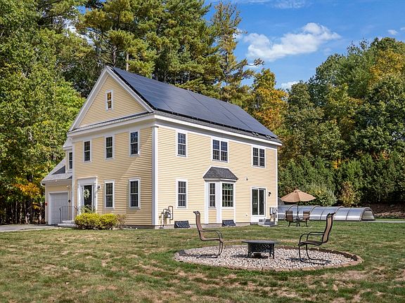 INVEST IN LOWER ENERGY COSTS & A SUSTAINABLE FUTURE! Wonderful & energy-smart 4-bdrm home on a dead end road, in a desirable, neighborhood setting. 5.1* private acres w/ direct access to the scenic Nashua River Rail Trail. Designed for year-round comfort & sustainability, the home features a large & owned, solar array, geothermal heating & cooling, ultra-efficient double studded ext walls, 2 EV charging stations, & an exceptional -11 HERS rating! 3 Tesla battery back up system & generator ready to ensure piece of mind. Sustainable bamboo flring thru-out! Open-concept kitchen, dining, & FR perfect for modern living. A 1st flr ofc w/ murphy bed adds flexibility for remote work or overnight guests. The 2nd flr includes the primary suite, bdrms 2-4, main bthrm, & the laundry rm. The showstopper is a 75-foot, 4season, LED-lit lap pool. This home is a rare blend of high-performance design, natural beauty, & convenience! A TRUE SUSTAINABLE HOME! Wonderful school system!!!