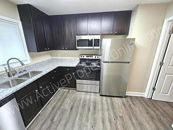This completely remodeled apartment home offers modern comfort with a touch of historic charm. Step into a bright space featuring brand new kitchen cabinets paired with elegant granite countertops and gleaming stainless steel appliances that would make any home chef smile. The fresh luxury vinyl plank flooring flows seamlessly throughout, while new windows flood the interior with natural light.