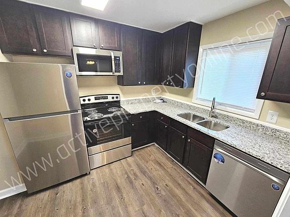 This completely remodeled apartment home offers modern comfort with a touch of historic charm. Step into a bright space featuring brand new kitchen cabinets paired with elegant granite countertops and gleaming stainless steel appliances that would make any home chef smile. The fresh luxury vinyl plank flooring flows seamlessly throughout, while new windows flood the interior with natural light.
