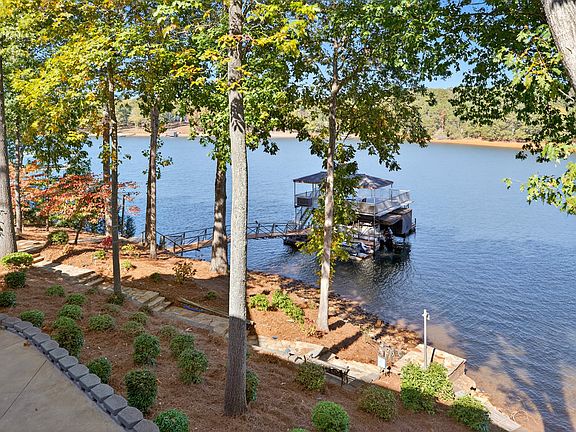 Lake Hartwell Luxury Estate in the prestigious Diamond Point community, a rare combination of architectural quality, thoughtful design, and one of the most breathtaking waterfront settings in the Southeast. This all brick custom home offers 7,867 sq. ft. of refined Southern living, designed for those who expect the best. From the moment you arrive, the sense of grandeur is undeniable. The stately brick facade rises above manicured grounds that blend seamlessly with the natural beauty of the shoreline. The gentle slope of the backyard leads to shimmering blue water and one of the best sunset views on Lake Hartwell. The Corps line extends to the water’s edge, an increasingly rare feature, with a new flagstone walkway leading to a grandfathered, two-story max-size dock featuring a roof deck, two covered slips with lifts, remote control boat curtains, and 35 feet of deep water year-round, a setup nearly impossible to replicate today. Step through the grand foyer and into a home filled with natural light, polished hardwood floors, and exquisite millwork. The remodeled chef’s kitchen offers custom cabinetry with leaded-glass doors, granite countertops, tiled floors, and a large center island that invites gathering and conversation. A stacked-stone fireplace anchors the kitchen and breakfast area, creating a warm and inviting atmosphere. The formal dining room overlooks the lake, perfect for memorable meals with family and friends, while the living room with gas fireplace and sunroom with three walls of windows showcase sweeping water views. The main-level primary suite is a true retreat, featuring hardwood floors, built-in shelving, and large windows that fill the space with light. The remodeled spa-style bath offers floor-to-ceiling custom cabinetry, dual vanities, a clawfoot soaking tub, and a large tiled shower. His-and-hers walk-in closets provide custom organization, and an adjacent office with built-ins offers the ideal work-from-home setting with tranquil property views. The terrace level feels like its own private retreat, featuring a full second kitchen, large recreation room with a stone fireplace, pool table, and game area — ideal for entertaining or relaxed lake living. Three spacious bedrooms with lake views and two beautifully remodeled baths continue the home’s commitment to quality and comfort. This level also includes a workshop, large storage area, and direct access to the lower covered terrace and flagstone path to the dock. Outdoor living spaces are designed for year-round enjoyment. Covered terraces on both the upper and lower levels extend the living areas outdoors, offering space for dining, lounging, or simply enjoying the view. The upper terrace provides panoramic lake vistas, while the shaded lower terrace offers privacy and a cool retreat after a day on the water. Additional features include a three-car garage with permanent stairs to a plumbed and metered attic, ready to finish as an apartment or guest suite. The home also includes a full attic with permanent stairs, extensive storage, and exceptional craftsmanship throughout. Located in one of Lake Hartwell’s most desirable communities, Diamond Point offers quiet streets, custom homes, and convenience, minutes to downtown Anderson, Clemson University, and an easy drive to Greenville, SC. This is more than a home. it’s a lifestyle. With deep water, a rare two-story dock, elegant living spaces, and timeless craftsmanship, this Diamond Point estate defines Lake Hartwell luxury living. Welcome home to Diamond Point on Lake Hartwell, where timeless elegance meets lakeside perfection.