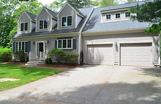 Great value for this light filled open concept cape style home on a quiet dead end street. Freshly painted and in perfect condition this home features an updated kitchen with new SS appliances, tile flooring and granite counters. The living/family room has a fireplace, wood floors and is open to the dining area and deck via large sliders. Huge master bedroom with two walk in closets and a tile bath with jetted tub. Guest room with private bath, a third bedroom and a bonus open loft/office space with large window make up the second floor. Central air and generator wired. Freshly finished walkout basement family room as well as ample storage. 24x24 attached garage with access to kitchen. The views out the back of the home look out to pristine mature forest. One block to Wompatuck Park, Beechwood Ball Park/playground and the Aaron River Reservoir for convenient recreation.