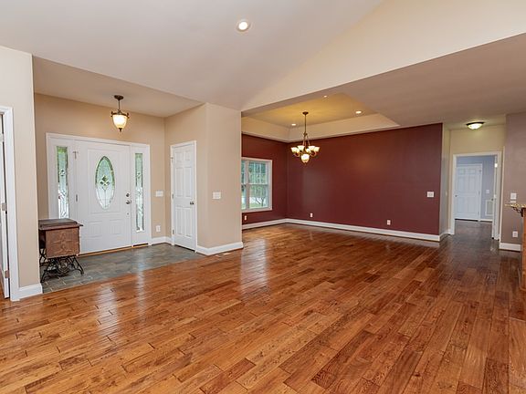 Home & 3 Bay garage with finished apartment. +/- 6 acres/ Home has 3 Bedrooms and an Office, 3 full bathrooms. Open concept kitchen/dining/living room with corner wood burning stove. Mother in law suite. Beautiful 3/4 inch hand scraped oak hardwood flooring, Ceramic tile in foyer, kitchen, pantry & baths. Granite countertops & solid wood cabinetry in kitchen & pantry. Encapsulated crawlspace and sprayed insulation. Detached 3 car garage has 1 bay that is climate controlled with heat & hot water. He/She Cave above Garage with custom built wet bar with walnut top, ice bin and shelves. Bedroom, & full bathroom. Located 5 minutes from public boat ramp, marina and golf course. 10 minutes to shopping. Fruit Trees, herb garden, and KOI Pond.