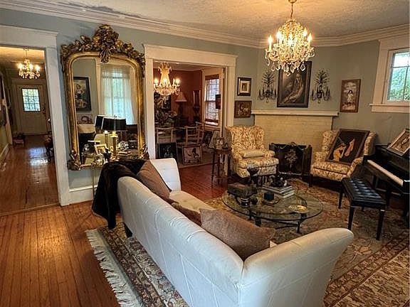 Charming 1920's Bungelow with all the charm you would expect in a house of this vintage and with unexpected recent updates including the roof, HVAC system, and water heater. Original heart of pine floors in excellant condition, 9 foot ceilings,3 fireplaces, and a wide central hallway between the wonderful front porch and the back screened porch. Private flat backyard which is fully fenced has a designated parking space for 1 car off the alley. Someone could move right into this home which has a movie set vibe or renovate to perfection. Home priced per 9/2025 appraisal by Mark D. Hodges at an attractive square foot price. Dare I say, hurry over, this 1 won't last long.