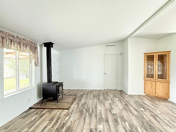 Okanogan - Incredible Valley View - Approximately 7 Acres/5 Irrigated - Refurbished MH featuring 3 bedrooms/2 bathrooms, living room with large picture window looking out and down the valley plus wood burning stove and built-in, dining room, kitchen with attached laundry room. NEW flooring throughout plus all new interior paint. Storm Doors both front and back of home. Attached covered front porch. Detached 1,296 square foot garage/shop with power, cement floor, cabinets, and tool bench. Circular driveway with large flat area. Property had been used to grow 5 acres of alfalfa. Shared well. Septic. $374,900 H-3679/MLS2388740