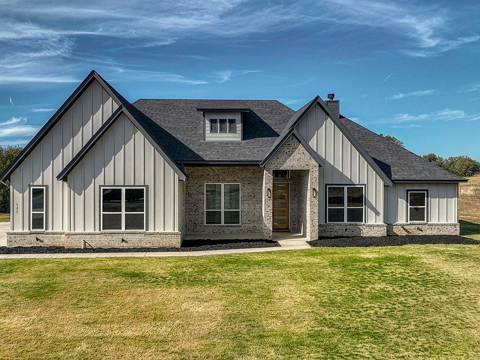 Welcome to this stunning 2,884 sq ft residence in highly sought-after Peaster ISD, offering luxury living in a serene country setting. Step inside to soaring ceilings and a dramatic floor-to-ceiling brick fireplace with a floating mantle, creating a warm and inviting focal point in the main living area. Massive windows frame the gorgeous 2.454-acre treed lot, bringing natural light and picturesque views into every corner. The thoughtfully designed layout features 4 bedrooms plus a dedicated office that can easily flex as a 5th bedroom, den, or private retreat. A spacious additional bonus room provides even more versatility for entertainment, play, or media. Hand-scraped hardwood floors flow throughout the main spaces, complementing a chef-inspired kitchen appointed with floor-to-ceiling shaker cabinetry, a large quartz island, and a generous corner pantry. The oversized primary suite is a private sanctuary with tray ceiling, and an expansive ensuite bath complete with dual vanities, a walk-in shower, separate soaking tub, and seamless access into a massive walk-in closet. From there, enjoy a beautifully designed pass-through into the galley-style laundry room and directly into the mudroom—an elevated and functional flow that enhances everyday living. Enjoy wood-burning fireplaces both inside and out, including on the large back patio overlooking the lush, partially fenced property with a fully fenced section ideal for pets or play. Located in a quiet cul-de-sac and just 10 miles north of downtown Weatherford, this remarkable home offers the perfect blend of luxury, privacy, and modern convenience.