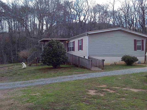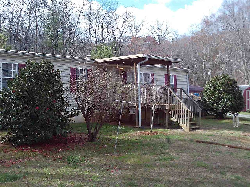 This home is definitely nestled in the mountains, beautiful hard wood trees and landscaping, 4 acres of peace and quiet, A double wide mobile home with a concrete block foundation, along with a metal roof. There is a detached double carport and three out buildings on the property. A spring runs through the property as well. You have inside 3 bedrooms and 2 bathrooms, a large living room with a gas log fireplace. The master bathroom has a large garden tub. A great place to raise a family.