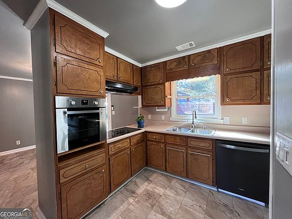 Beautifully Updated All-Brick Mid-Century Ranch on a Huge Lot - Minutes from VyStar Amphitheater & Downtown Stockbridge! Welcome to 121 Duvall Dr, a clean, polished, and move-in-ready all-brick ranch sitting on an oversized, level lot at the end of a quiet dead-end street. This loved home has been thoughtfully modernized while preserving its mid-century charm-ideal for homeowners seeking comfort, functionality, and unmatched outdoor space. Just minutes from the VyStar Amphitheater, Downtown Stockbridge, major highways, restaurants, grocery stores, and banks, the location delivers convenience and peace. Step inside to hardwood flooring across the main living areas and bedrooms, crown molding throughout, and fresh interior paint for a crisp, updated feel. The former 2-car garage is now a spacious, cozy family room/den with exposed brick and decorative ceiling trim-perfect for gatherings. The kitchen blends original craftsmanship with modern updates, featuring solid wood cabinetry, an electric stove, dishwasher, French-door refrigerator, undermount water filter, and a charming breakfast area with a cut-out opening to the family room. The home includes double-pane windows (2009), contemporary lighting, micro blinds, and a smooth flow from room to room. The primary bedroom features a shoe shelf and access to an ensuite bathroom. Bathrooms include tile flooring, updated hardware, pedestal/tall vanities, ceiling fans, and a tub with jets with tile surround. A space-saving pocket door enhances functionality in one of the baths. Laundry room includes newer flooring, and the washer and dryer to remain. The outdoor lifestyle here is unmatched. Plenty of backyard parking, two driveways, two rear entrances, a covered back patio, and a front porch make access easy and entertaining effortless. The yard is fully fenced and beautifully landscaped with an extensive collection of established plantings. You'll also enjoy outdoor benches, swings, and a fire pit area-perfect for relaxing evenings. For the wood worker, gardener, hobbyist, or business owner, this property is a dream. Detached Powered Workshop and an oversized garden shed with double doors to park a tractor mower. The lot is deep and level-you can drive all the way to the back-and there's ample space for outdoor projects, gardening, RVs, boats, and more. The property also includes a rainwater capture system, perfect for the gardener. This property offers unmatched value-a spacious, beautifully maintained home on one of Stockbridge's most functional lots, surrounded by nature and only minutes from everything.