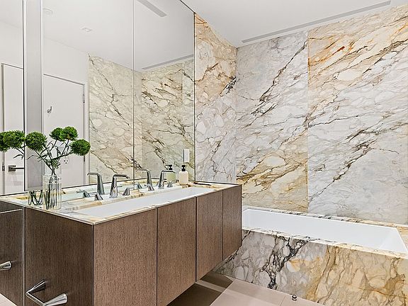 The building itself offers every amenity imaginable: an indoor/outdoor residents’ lounge, rooftop terrace with fire pit and grill, private dining room with catering kitchen, fitness center, indoor swimming pool, landscaped courtyard, children’s playroom, screening room, automated indoor parking system, bike storage, private storage, a 24/7 attended lobby, and full concierge services.