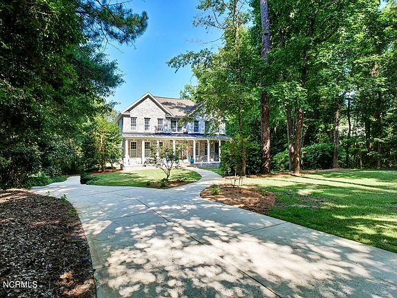 Experience the epitome of waterfront living in this custom 3-bedroom, 4-bathroom waterfront home, ideally located within the privately gated Pelican Reef community, among lush coastal flora on the Virginia Creek. The spacious outdoor living areas, private dock, and secluded grounds make this unique home a highly sought after treasure.Elegant columns meet you at the entrance and the modern gray brick creates a sophisticated ambiance upon approach to the home. Intricate details continue inside as you are captivated by the stone fireplace and Brazilian Cherry hardwood flooring of the main living area. The open layout and two story vaulted ceilings of the great room provide a spacious dining area with an abundance of natural light. In the kitchen, a stunning geometric island features a prep sink and gorgeous granite countertop. The double oven, vent hood, generous cabinet space, dumbwaiter, and beverage cooler provide all of the conveniences you could wish for in your dream kitchen.The main floor features the primary suite, with ensuite bathroom and walk-in closet. On the third level, another bedroom with a large ensuite bathroom acts as a second primary, matching the grand status of the first. Across the hall is a 3rd bedroom, a full bathroom, an additional room with a closet which could be used as a 4th bedroom, and a balcony that overlooks the great room below. Access to the top open deck allows sunbathing or gazing out at the sound where you'll be in awe of wildlife including dolphins and eagles.The ground floor offers even more versatility with a flex space, massive storage room, and sitting room that leads outside with access to the backyard and dock. Pelican Reef is conveniently located just a short drive from Surf City and Topsail Beach. Amenities include community pool, clubhouse, fitness center, tennis courts, dry dock, kayak launch, playground, walking trails, and RV/boat storage.