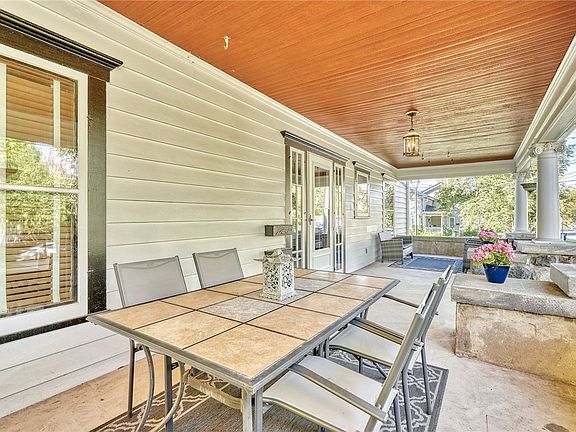 MAIN FLOOR combines vintage charm with generous proportions —SPACIOUS FAMILY ROOM with BRICK FIREPLACE and LEADED-GLASS WINDOWS. FORMAL LIVING ROOM/LIBRARY with BUILT-IN BOOKCASES, SECOND FIREPLACE, and a PRIVATE SIDE ENTRY perfect for home office potential. FORMAL DINING ROOM stuns with a COFFERED CEILING, BAY WINDOW, and CUSTOM BUILT-INS. The KITCHEN blends warmth and practicality with WOOD CEILINGS, AMPLE CABINETRY, and direct access to the CARPORT PATIO AREA. A FULL BATHROOM with CLASSIC CLAWFOOT TUB and two adjoining rooms create even more flexibility — ideal for a HOME OFFICE, PLAYROOM, or potential 5TH BEDROOM!