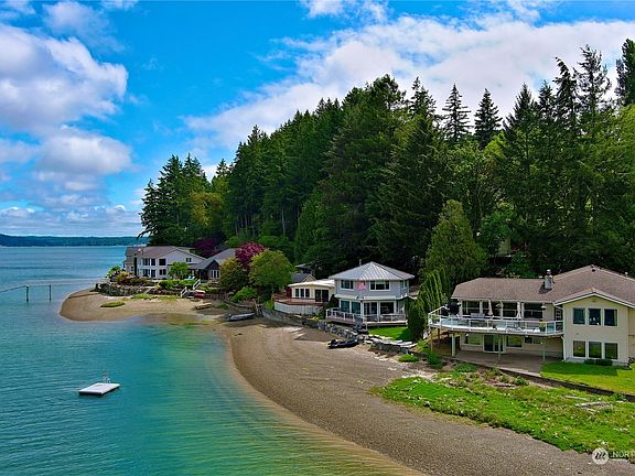 Incredible Case Inlet views, clamming from your back yard, spend days on the water & evenings taking in breathtaking sunsets & starry nights. Stretch Island home w/over 3200 sq ft, 3 bedrooms, 2 office spaces, 3 liv rooms (1 w/kitchenette), expansive entertainment deck, river rock fireplace in main living/dining/kitchen area w/stunning inlet views. Primary bedroom w/wall of windows & sliding glass door to the deck. Lower level plumbed for propane fireplace, w/sliding glass door access to your amazing waterfront back yard. Updated HVAC/heat pump & Propane Tankless water heater. 3 min to Fair Harbor Marina, 25 min to Shelton, discover the endless natural beauty of the area w/trails, beaches, islands, creeks, forests, lakes, wildlife, & more.
