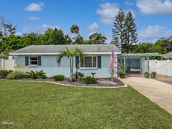 Charming 3-Bedroom home in a Tropical Paradise - Turnkey & Ready to Enjoy! This beautifully maintained 3BD, 1BA home offers the perfect blend of comfort, style, and convenience. The solid concrete block construction ensures durability, while the terrazzo floors add timeless character throughout the home. The kitchen features sleek stainless steel appliances (new in 2022), large basin sink, plenty of cabinets and even space for an island making meal prep a breeze. The home has been meticulously cared for, with updated electric, fixtures, and windows, ensuring a move-in-ready experience. And, it comes completely furnished and turnkey—just bring your suitcase! The tropical paradise backyard is lush with landscaping and even has a mature avocado tree offering both beauty and privacy. Avoid using the city water for irrigation! This home has a well and irrigation system. Enjoy the Florida lifestyle with front and rear porches, a spacious patio for outdoor gatherings, and plenty of room for relaxation. The backyard is fully fenced, providing the perfect retreat. Located between U.S.1 and Riverside Drive, you'll have easy access to Downtown New Smyrna Beach (1.8-miles), Edgewater Public Boat Ramp (¾-mile) and the beach (3.75-miles). Bonus opportunity: There is a rental already booked for February, offering the potential for nearly $4,000 in income. This reservation can be kept or cancelled based on the buyer's preference.