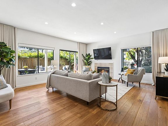 Single-Level, Corner Unit is GORGEOUS w/Luxury Upgrades!! Tastefully designed & perfect for anyone who wants easy accessibility, this serene retreat is steps from scenic walking paths, Bayfront access, parks & trails. Enter Foyer & be greeted by stunning French White Oak flrs that lead to a sunlit, spacious living area. Fully remodeled Kitchen features dramatic, polished granite slab counters & custom cabinetry. High-end appl. incl: new LG frig w/InstaView glass door & new KitchenAid range & microwave. Built-in desk area offers a convenient work from home space. Formal Dining Area opens to its own private deck & flows seamlessly into Living Rm. Living Rm features a dry bar w/Italian marble counter & built-in cabinetry, a cozy W/B f/p & a spacious patio w/desirable SW exposure. Bedrooms are privately separated --Primary Suite boasts custom designed California Closets walk-in w/glass doors, hamper & jewelry storage; access to a private sitting deck & luxurious en-suite bath w/separate tub & shower & dual sink vanity w/granite counters. 2nd BD is bright w/2nd bath fully remodeled w/custom tiled walls/shower, lighted mirror & floating vanity. Custom draperies, in-home laundry & 2 pkg spaces in secure garage w/private stor closet & bike stor. HOA boasts a pool, spa & tennis courts!