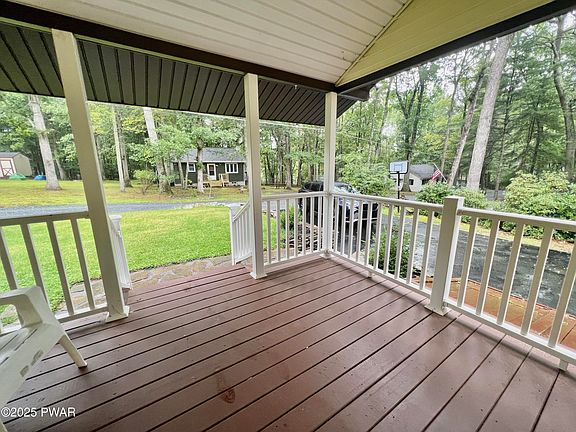 No HOA home with 3 bedrooms, 1.5 bathrooms, and a bright sunroom! The main floor features a large living room, 1/2 bathroom, and a kitchen with granite countertops. You will also find a lovely sunroom on the front of the home. Upstairs, you will find 3 bedrooms and a nicely updated bathroom with a tiled shower/tub. The basement is unfinished with plenty of room for storage. Outside you can enjoy a covered front porch, a large back deck, and fire pit area. The detached 2 car garage offers ample store and room for your vehicles, along with a whole second floor that you could finish off or keep as storage space! This is a great home located closed to everything Lake Wallenpaupack has to offer. Short term rentals allowed with a permit!