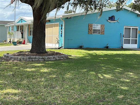PROFESSIONAL PHOTOS COMING SOON!!!! Beautiful, well maintained home with vaulted ceilings and a wide open floor plan, located on a large corner cul-de-sac lot. Gorgeous kitchen with upgraded cabinets and countertops.Kitchen also features stainless steel appliances and a nice size pantry. The master bedroom is very large with a gorgeous bathroom and walk in closet. The secondary bedrooms are both spacious. The enclosed lanai with AC is located off the back of the home. Beautiful place to relax. Great Man Cave. The front porch just adds to the charm of this beautiful home. Double driveway with a 2 car garage with sliding screen doors. There is a separate golf cart door with automatic opener. The large, white storage cabinets and workbench stay with the home. The community is absolutely gorgeous with countless amenities, which include: large swimming pool with hot tub, 18 hole championship golf course, driving range and putting greens, shuffleboard, tennis, pickle ball, fitness center, iibrary, softball field, and a 5 star restaurant and lounge. What more can you ask for? This is a beautiful home in a beautiful community. You won't be disappointed!!!!