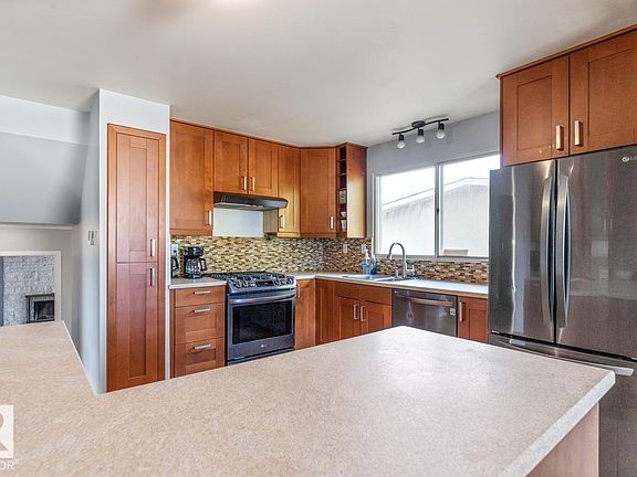 Welcome to family-friendly Glen Allan! This 4 bedroom, 2 bath split-level home with AC and double garage offers space and comfort in a prime location. Hardwood flooring flows through the bright, spacious living room with picture window, leading to the updated kitchen featuring plenty of cabinetry, stainless steel appliances including gas stove, and a peninsula island overlooking the dining area. Upstairs, the king-sized primary is joined by 2 generous bedrooms and a 4pc bath. The lower level boasts a large rec room with cozy fireplace and walkout access to the backyard, plus a 4th bedroom and 3pc bath. The basement is partially finished with a framed-in 5th bedroom complete with egress window. Outside, enjoy the fenced and landscaped yard—perfect for kids and pets. Steps to schools, GARC, Sherwood Park Mall, Broadmoor Park & more, this is the ideal family home in a highly desirable, mature community!