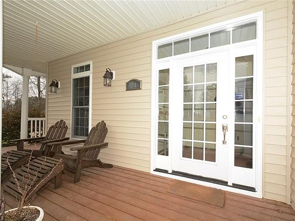 Ready for new owners! A wraparound front porch and brick patio area with fire pit make this home perfect for entertaining. Distinctive living room w/ cathedral ceiling; formal dining area; eat-in kitchen w/ cozy breakfast nook, cherry cabinets, gas range, Corian counter tops, & tile backsplash. A lovely stone fireplace in the den adds warmth & charm. Other features: hardwoods in dining room and kitchen/breakfast, covered porch; partially floored attic. Time Warner, Wifi, and security system available.