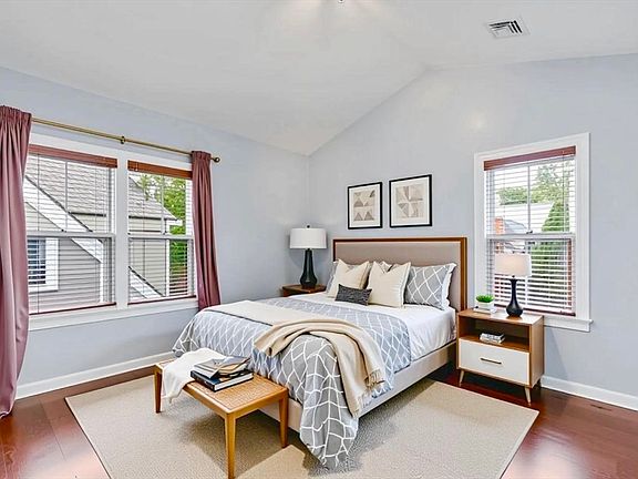 This penthouse corner unit is flooded with sunlight, offering dramatic cathedral ceilings and a stunning, sophisticated floor plan.2006 built by a local builder w/a reputation for quality; no detail has been overlooked - limestone & marble baths, European styled kitchens & baths, mahogany deck, abundant closets, crown mouldings, and rich hardwood floors. Additional highlights include central air & heat with a smart thermostat, in-unit laundry, a very large private basement storage room, and one deeded parking space. All just steps to " GreenT", restaurants & shops.