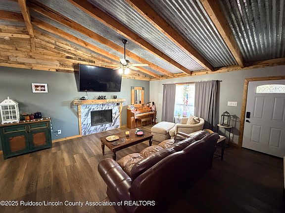 Convenient Location-Extensively Remodeled One-Level Home! Discover rustic charm & modern comfort in this remodeled home with wood accents and a stylish corrugated metal ceiling. Offers two living areas with their own fireplace, creating the perfect atmosphere for relaxation or entertaining. Spacious low maintenance covered front deck, ideal for outdoor living. There is a one-car garage with shop area, separate storage shed, & a fully fenced backyard on a desirable street-to-street corner lot. The kitchen has granite countertops, stainless steel kitchen appliances, while upgrades such as a tankless water heater & water softener add comfort and efficiency. This move-in-ready home blends rustic character with thoughtful updates--all in a convenient, accessible location close to town amenities