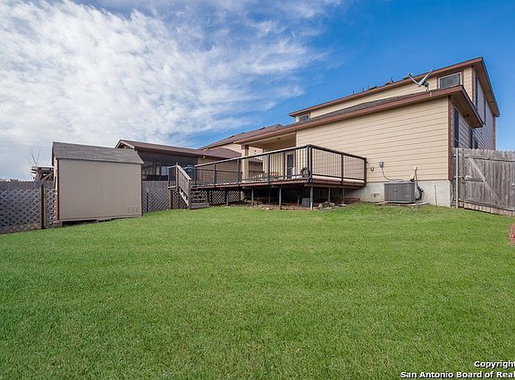 Growing family? Need more space? Come see this 2-story 2400+sqft home built in 2014 in the popular Schertz Cibolo school district with 4 bedrooms, 3.5 bathrooms & a fabulous backyard 12'x25' deck. Open floor plan includes downstairs master bedroom, 19'x15' gameroom & 12'x13' loft upstairs. 9' ceilings downstairs, stainless steel appliances, 18" kitchen bfast bar top. Covered back patio, 8'x8' storage shed. Solar screens to help stay cool. Brick exterior front with decorative shudders. Energy Star Cert