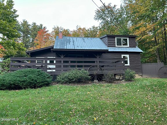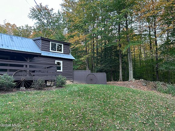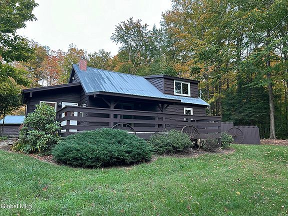 Unique Opportunity! This charming three bedroom, one bath home and barn are perfectly situated on a 2.5 acre secluded lot. Beautiful wood flooring, beamed cathedral ceilings, a large deck for relaxing or entertaining and tranquility make this home a dream. The large landscaped yard has a small pond and firepit, an outbuilding for storage and cover for firewood. Also included is a large metal barn with 4 horse stalls, tack room, storage area and an arena. This building could be multipurpose, depending on your needs. A must See!