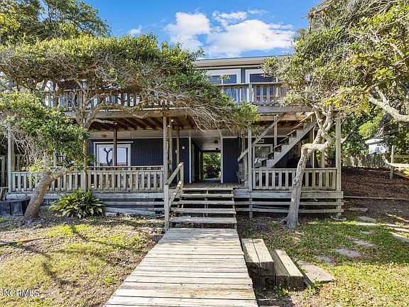 Location! Location! This Atlantic Beach home is situated on a large wooded, waterfront lot with gorgeous live oaks, a private pier and dock with two boat lifts; 3 bedrooms, 4 full baths. Close proximity to the beach, unique shops, groceries, fantastic restaurants, the NC Aquarium and tons of other exciting coastal offerings. This home is being sold ''as is'' and is ready for your personal touches.