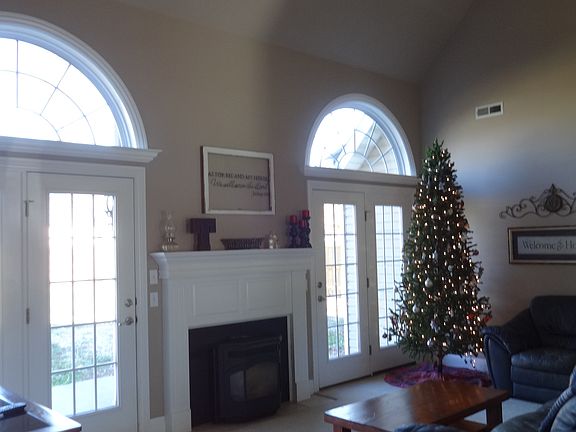 Fabulous floor plan with high ceilings and arched window. Yankee Bay pellet stove in living room. Alder cabinetry and cultured marble vanities in bathrooms.