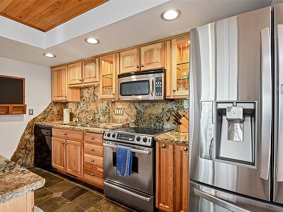 - Beamed Ceilings, Breakfast Bar, Granite Counters, High Ceilings, Marble Counters, Main Level Primary, Skylights, Wired for Sound