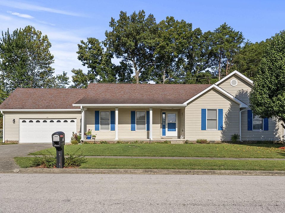 Welcome to this 3 bedroom, 2 bathroom ranch home featuring real hardwood floors in the main living areas and nice-sized bedrooms throughout. The kitchen offers updated countertops and appliances, while new gutters add peace of mind. Enjoy a cozy, private backyard with beautiful landscaping, colorful flowers, and a covered back deck that's perfect for relaxing or entertaining. An outbuilding provides extra storage, and the attached 2-car garage makes everyday living convenient.