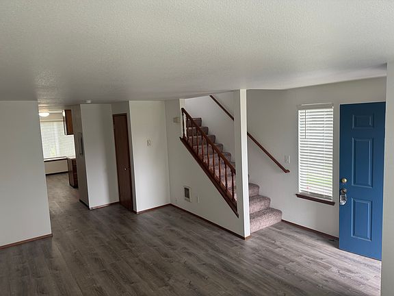 Nice rental. Fully repainted ,new hardwood vinyl floors upstairs and downstairs. Carpet only on stairs. New toilets, new blinds. Comes with two covered parking spots, covered patio, washer and dryer hook ups Apartment pays the water, sewer and landscape maintenance. Renter pays their own electric and garbage .income needs to be at least 2 1/2 times the rent. no bad rental history no active collections. Apartment pays the water, sewer, and landscape maintenance. Renter pays their own electric and garbage service. Comes with two covered parking spots. No pets or smoking /vape in unit.