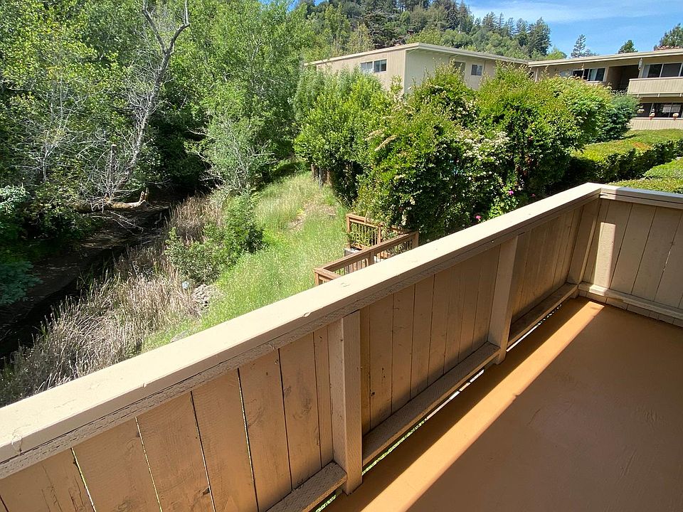 This apartment has a wonderful outside setting with a deck overlooking a creek. Unit is on the end and is sun filled.