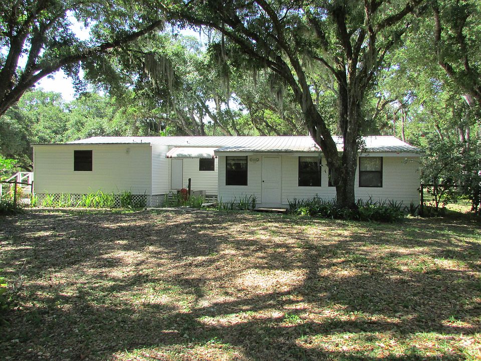 2.52 acres of Beautiful Property. Oaks fill the front yard and the back is cleared pasture and canal in the back. Bring your horses!! Must see for the price. New roof 5 years old, 2 walk in closets, remodeled kitchen, well and city water available and new water line installed. Buyer will keep all furniture as well.