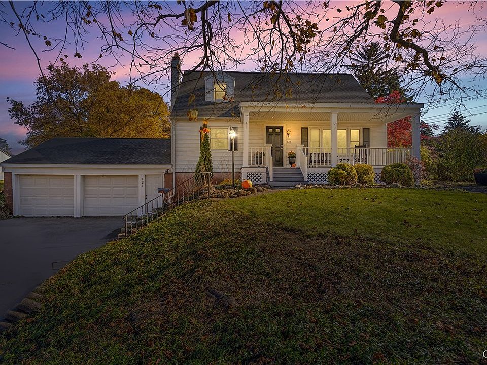 Welcome to 121 Kimberly Drive W. This charming 3-bedroom, 1-bathroom Cape Cod features a stylish kitchen with quartz countertops, open concept living/dining room & beautiful hardwood floors throughout. The first-floor bedroom & full bath layout provides ideal accessibility. Countless updates including a new roof installed in the Spring of 2025. Plenty of closets & storage including an attached 2-car garage.  The partially finished basement is already plumbed for a bathroom with so much potential for additional square footage. Enjoy your morning coffee while sitting on the covered front porch or the back patio overlooking the mature landscaped yard.  Located on a .75-acre corner lot within walking distance of restaurants & shopping, this location has it all. ********OPEN HOUSE Sunday November 2nd 12-2pm****************