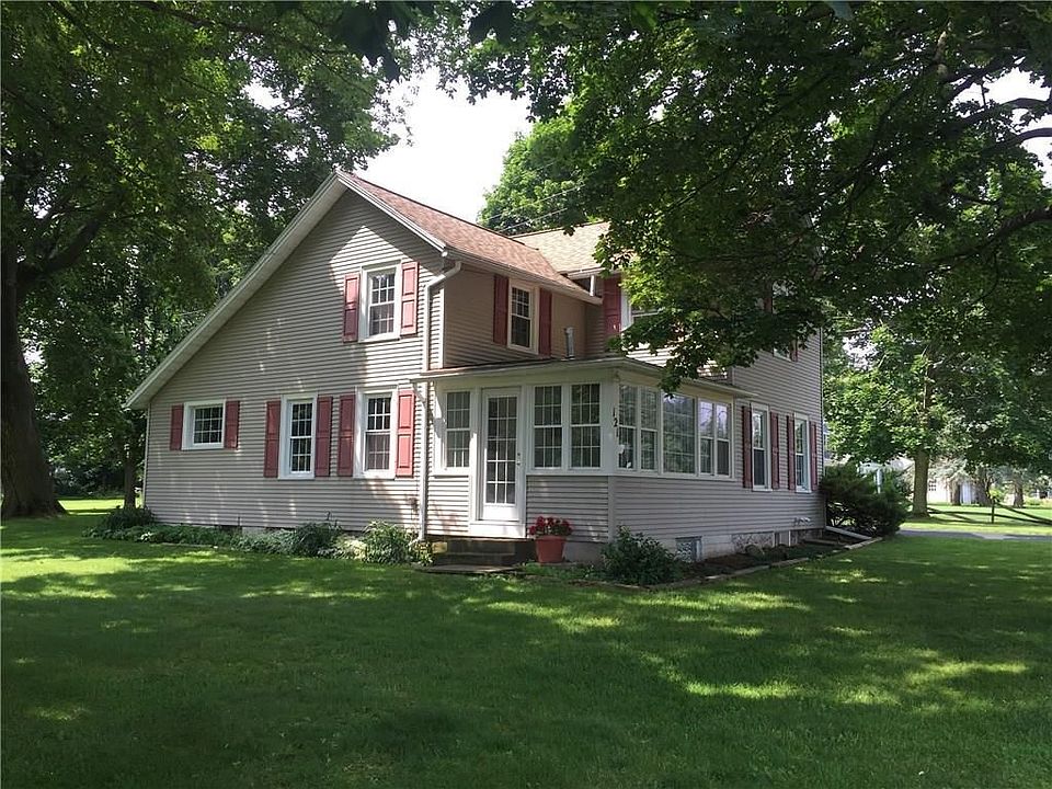 Gorgeous curb appeal on this 4Bd, 2 Ba Pittsford Colonial Farmhouse on over half acre lot exterior is totally redone vinyl siding, newer roof, thermopane windows! interior IS totally redone New Kitchen, New first floor bath with amazing shower. new drywall and insulation, fixtures and paint throughout. Amazing Park-Like lot w 2 car garage. Newer High Efficiency Gas Furnace!