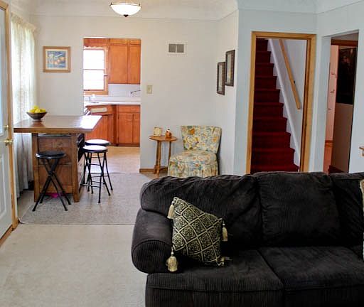 Perfect centralized Cedar Valley location. You will instantly appreciate the quality of this well built and maintained 1 1/2 story, stone front home with a very large lot. It is just waiting for you and is priced at only 112,500. There are two bedrooms on the main level with a nice size living and dining area with cove ceilings. The kitchen is very welcoming with a corner sink and new stove. The upstairs is the master bedroom with ample space for a reading or office area and ample storage. The lower level has a very nice family room with neutral decor and a laundry area with storage.....and the 200 ft. deep lot is amazing. 1000.00 carpet allowance.