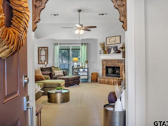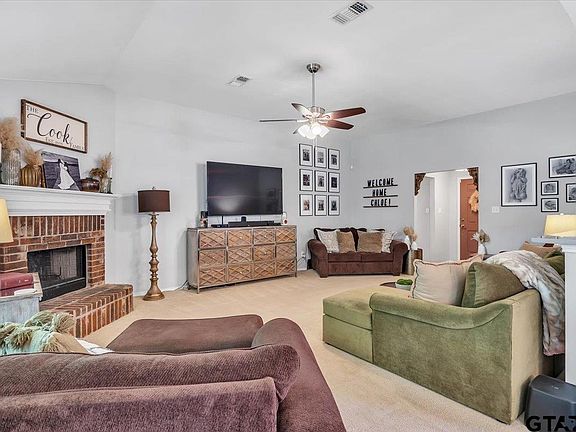 This beautiful Flint home is absolutely stunning! Every inch of the home has been lovingly maintained and decorated. Upon entry you will notice the cozy corner fireplace and open floorplan. The kitchen features expansive designer grey quartz countertops, white picket style backsplash, white painted cabinetry, deep basin sink, an island for meal prep and Samsung stainless steel appliances. Designer chandelier lighting in kitchen and breakfast area and matte black plumbing and cabinet hardware complete the upscale look. The paint throughout is right on point with designer colors and accent walls in all the right places. The primary bath offers a chic black painted vanity, and gold accent hardware along with a walk in closet for your organization needs. The two guest bedrooms are equally stylish both with designer paint; one with a painted feature wall, and the other with a large window and high ceilings. The fenced backyard is the perfect size and includes a large covered patio with ample space for relaxing and enjoying meals al fresco. The utility room is large and includes extra shelf space for storage. The roof was recently replaced in April 2024. This home is only minutes away from Toll 49 for quick departure to Dallas and close to Cumberland Village shopping center which offers many chain restaurants, shopping options and Super One grocery. The home is located in award winning Whitehouse school district which completes this perfect package! Make your appointment today as homes this beautifully finished in such a desired location are difficult to find under $300,000!