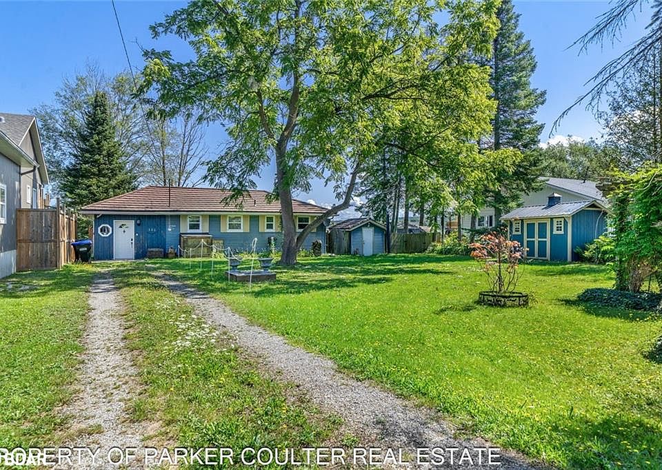 Welcome to your year-round waterfront retreat on the stunning shores of Georgian Bay. Nestled in the peaceful community of Victoria Harbour, this adorable 2-bedroom, 1-bathroom cottage offers 800 square feet of cozy living space on an impressive 76 ft by 294 ft lot, located at the end of a quiet dead-end street. Step outside into your own private oasis. The backyard boasts 76 feet of pristine waterfront, a sandy beach area, and a vegetable garden. Enjoy a brand-new 100-foot dock (2024) that stretches out to a spacious 180 sq ft. platform, perfect for boating, kayaking, fishing, or paddle boarding. You'll also find a newly built bunkie (2025), three storage sheds, two gazebos, including one enclosed hexagonal design for year-round enjoyment and a 15 ft by 12 ft decked platform ideal for relaxing or entertaining. Inside, the cottage features a spacious living and dining area with a cozy gas fireplace, leading into a functional kitchen. There are two comfortable bedrooms, a 3-piece bathroom, and a separate family room, also with its own gas fireplace, providing additional space to unwind. Located just 1.5 hours from the GTA and close to all local amenities, including shopping, restaurants, parks, trails, and schools, this home offers the perfect balance of peaceful waterfront living and everyday convenience. Whether you're looking for a full-time residence or a weekend escape, this charming property is a rare gem on Georgian Bay.